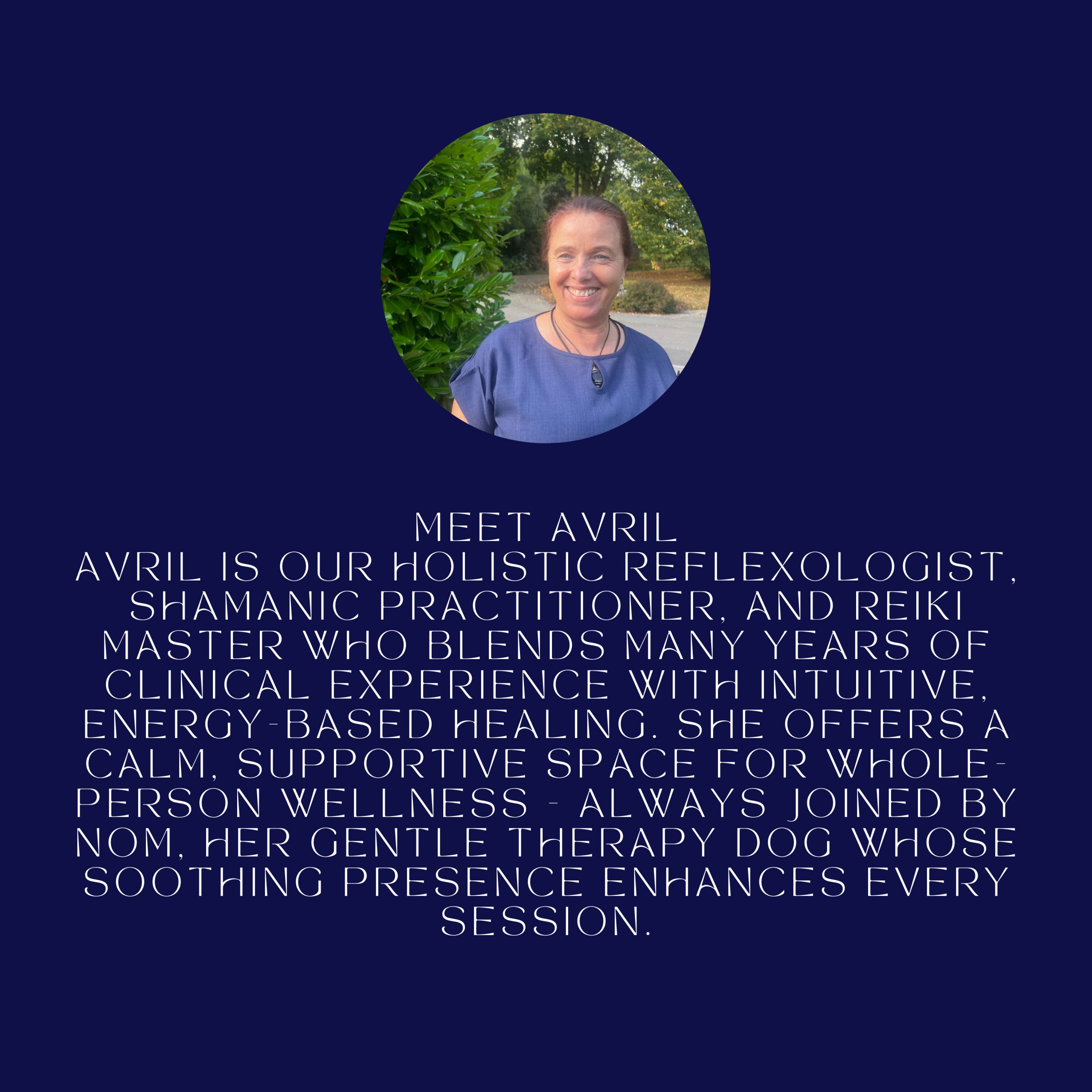 AVRIL IS JOINING US ONCE A MONTH TO PROVIDE HOLISTIC THERAPIES Tel: 07780 330 732 To find out more about our Monthly Events & Classes, get in touch with us now on 01305 250 700